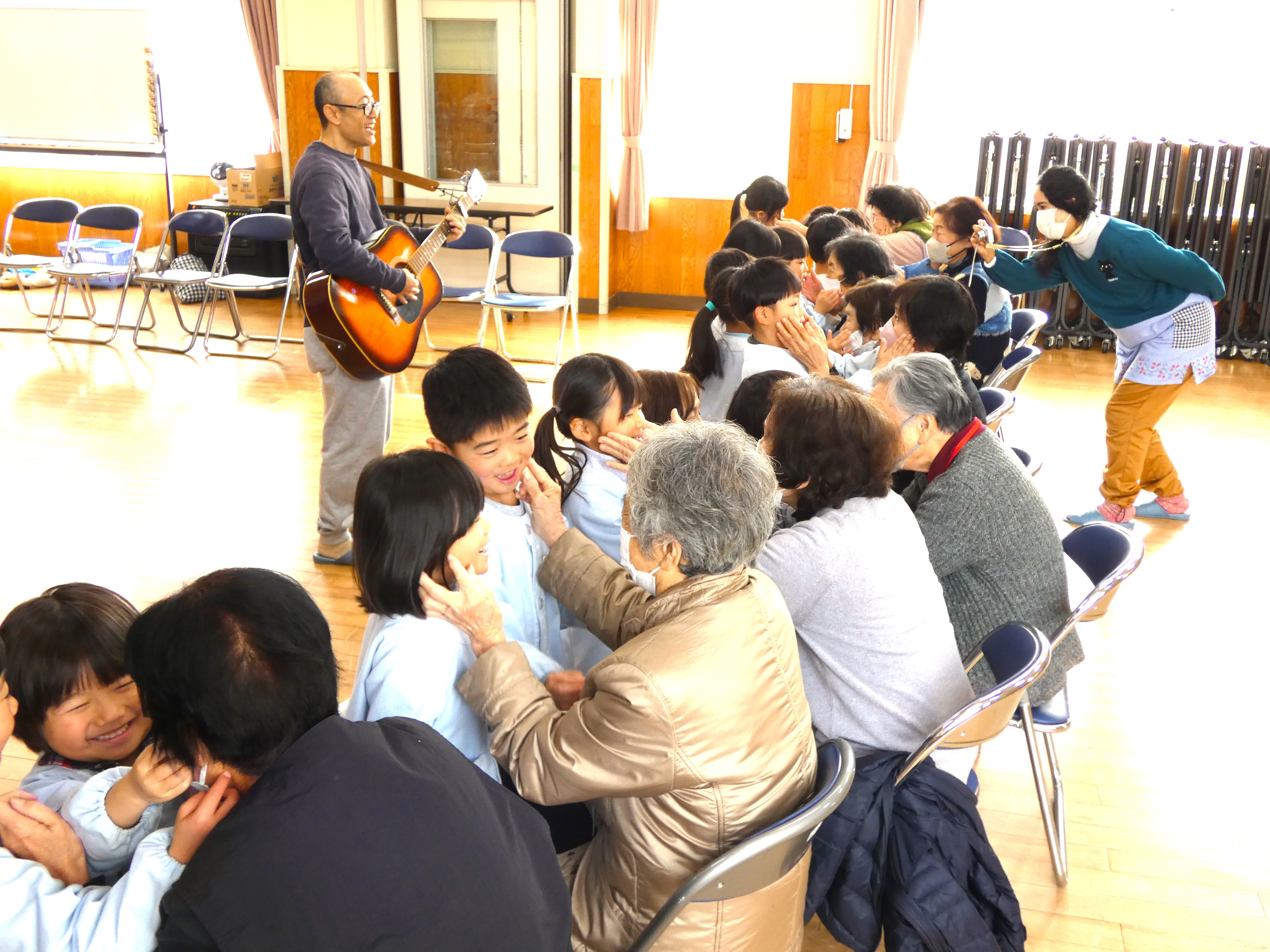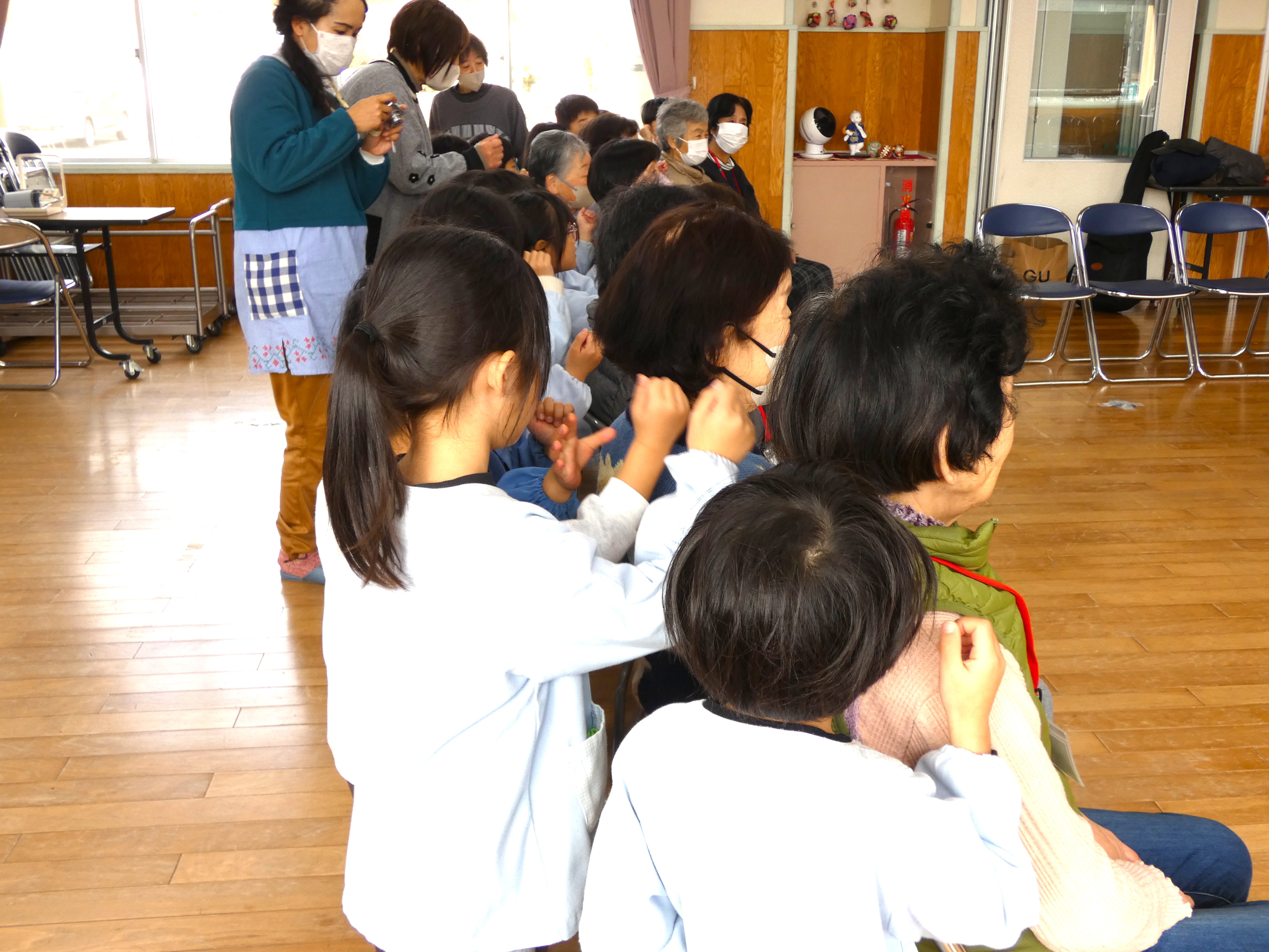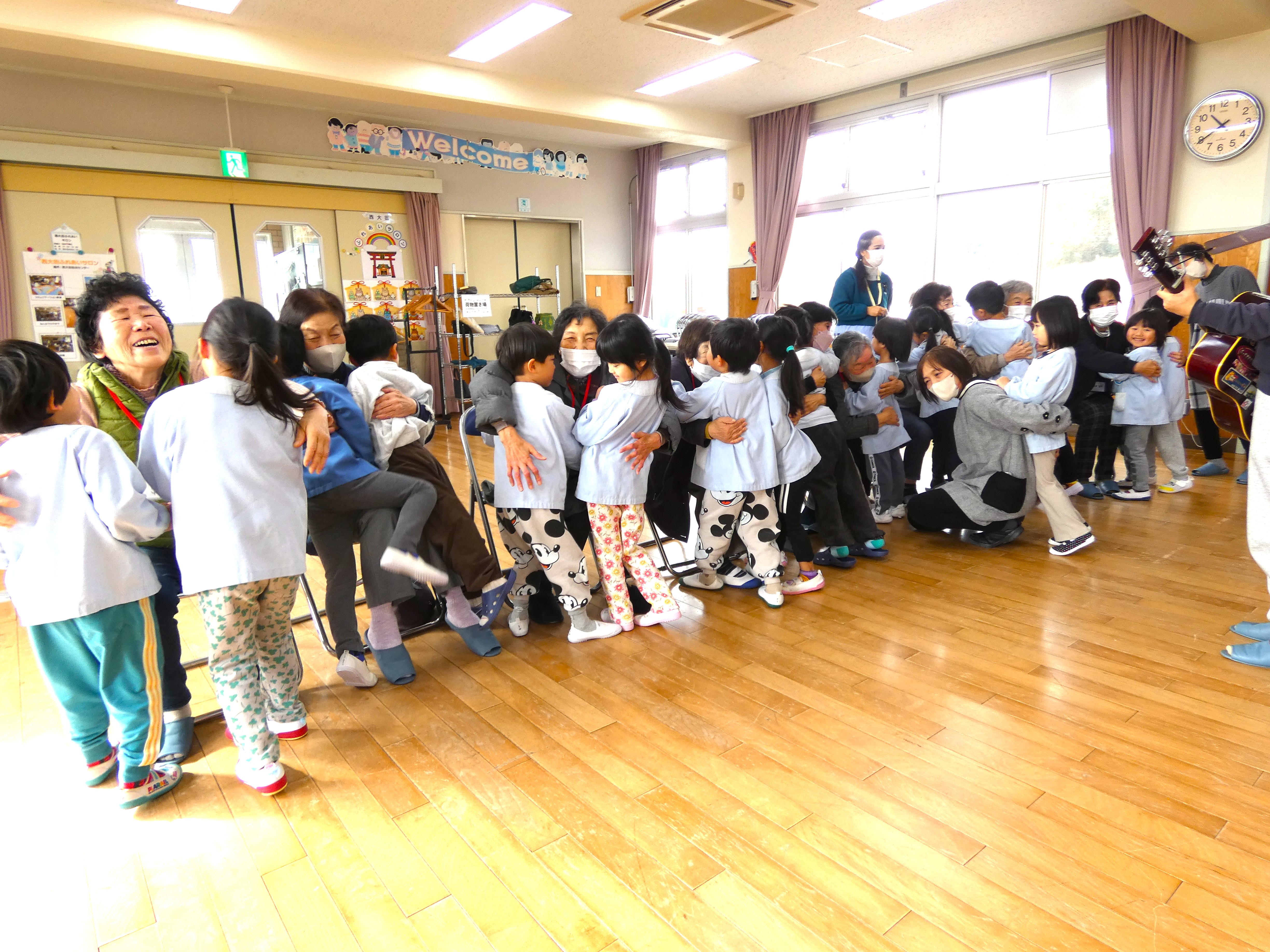 方々と肩たたきや手遊びでしっかり触れ合いました。全員ニコニコ笑顔で、たっぷり元気パワー