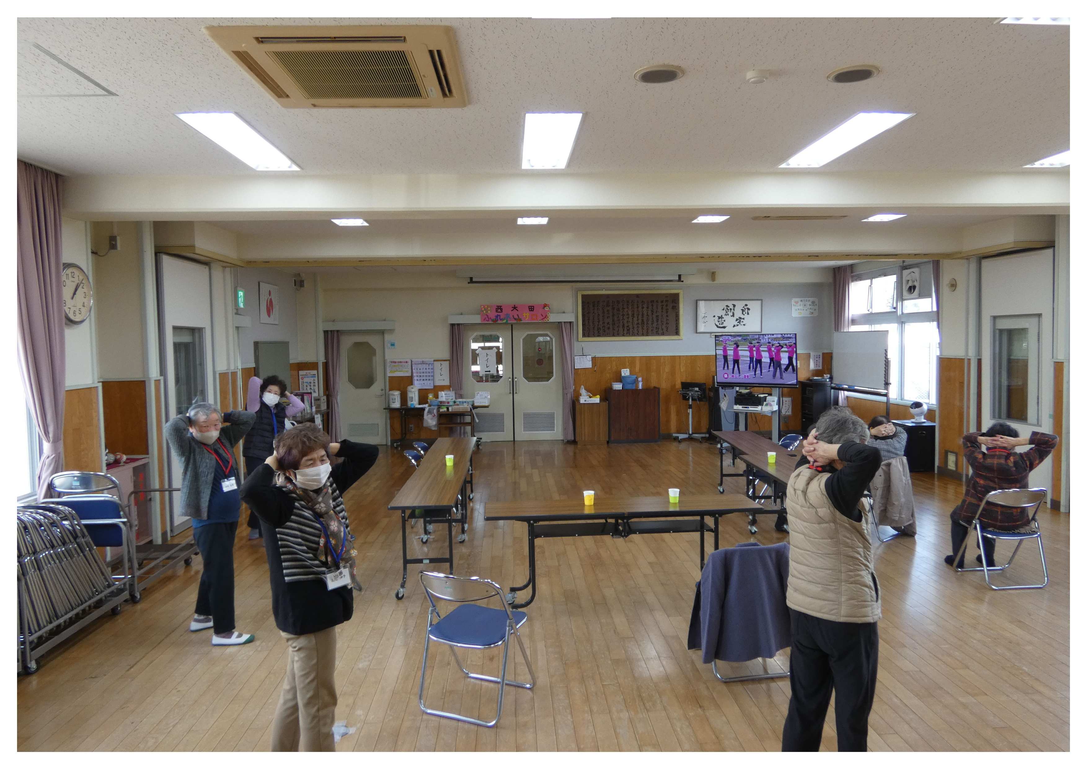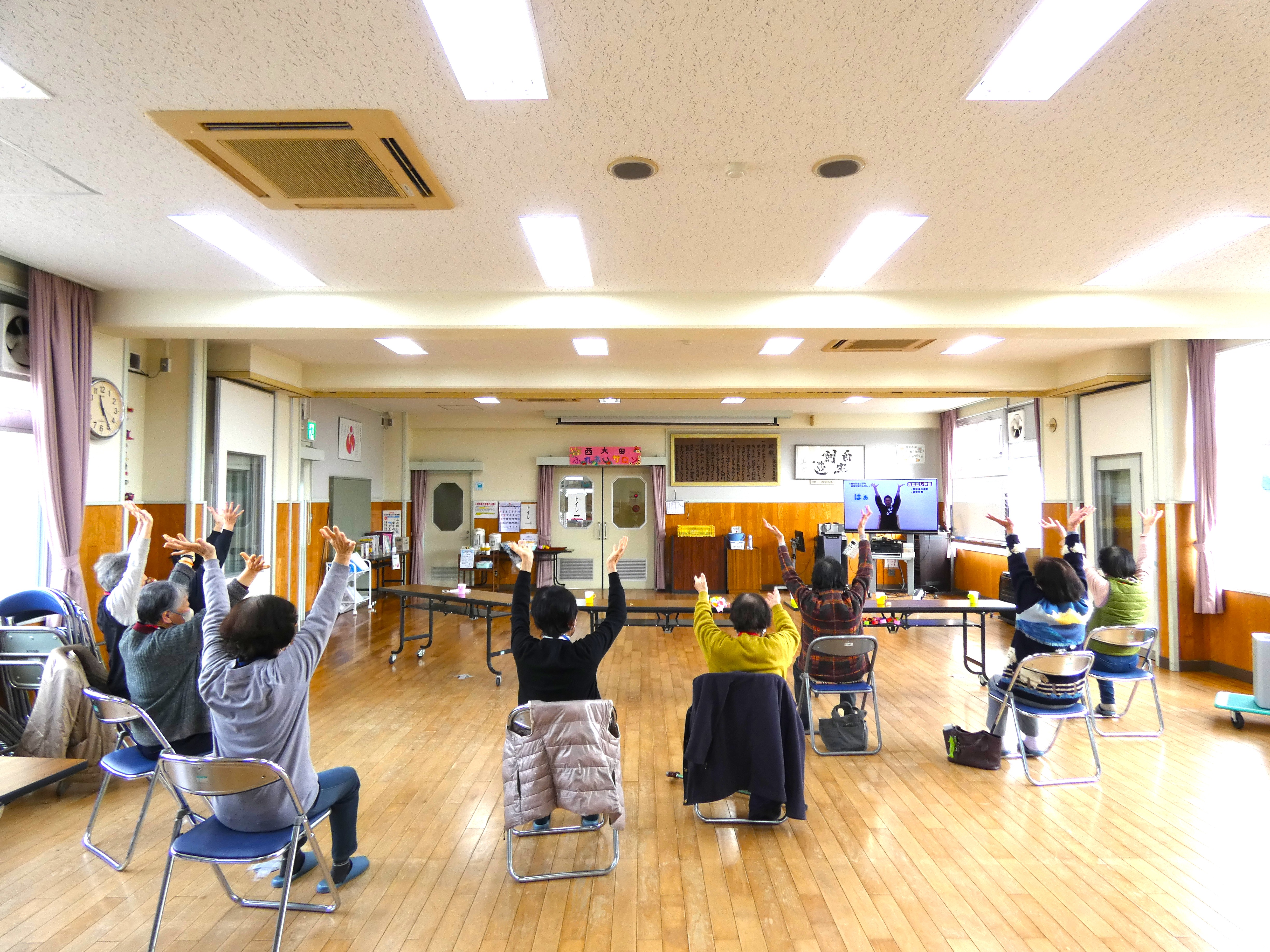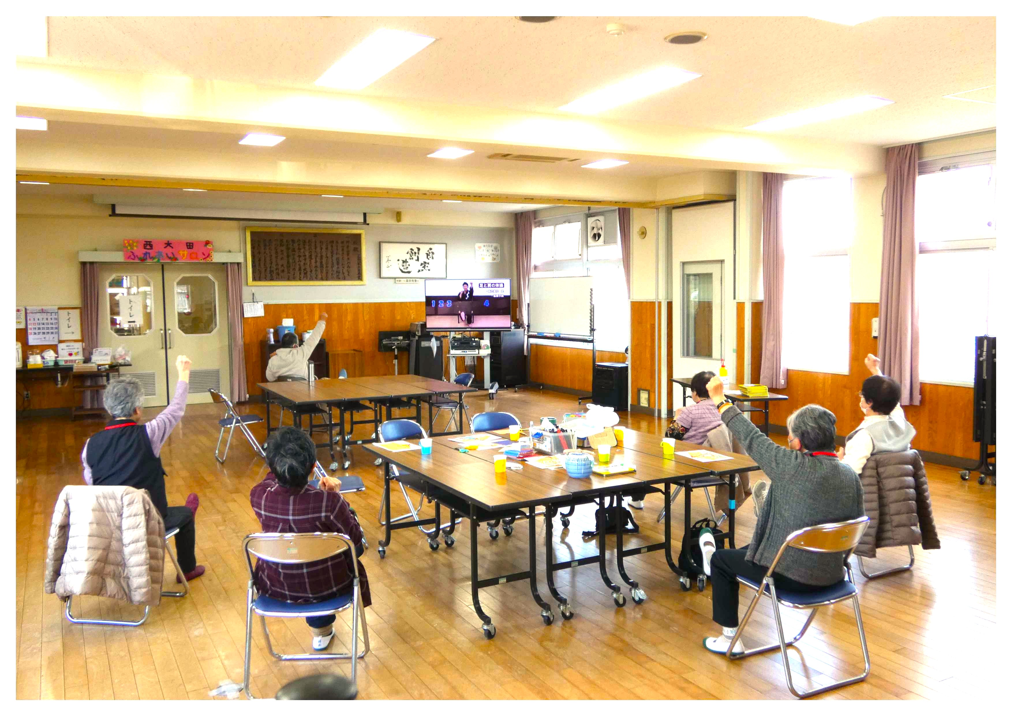 合わせて踊ったり、脳トレ体操をしたり、出来ても出来なくても皆さんしっかり楽しんでおら
