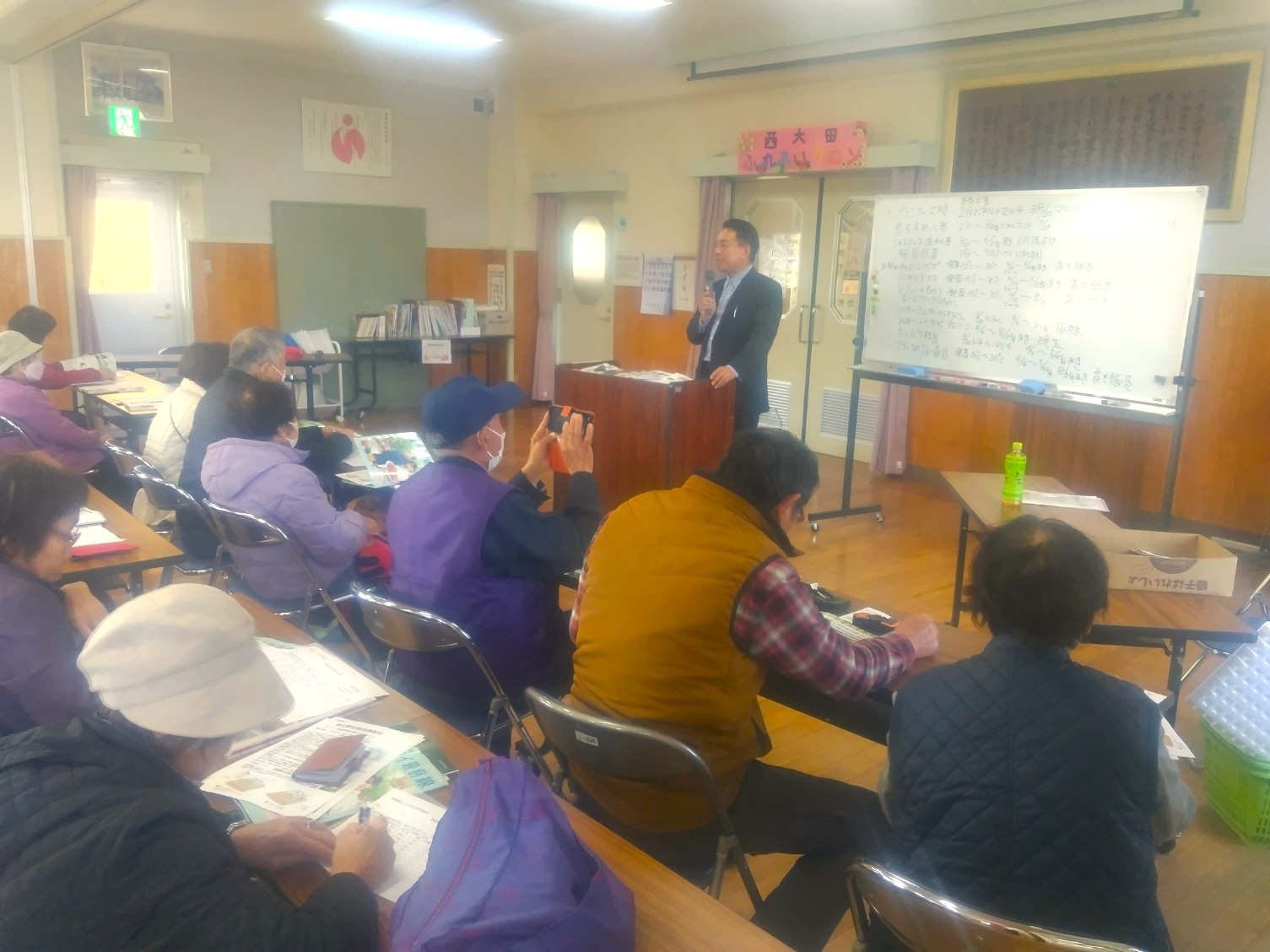 西大田ふれあいサロンでは、3月9日(月)午前10時より講師に健康保険課の多治見さんと田口さんを