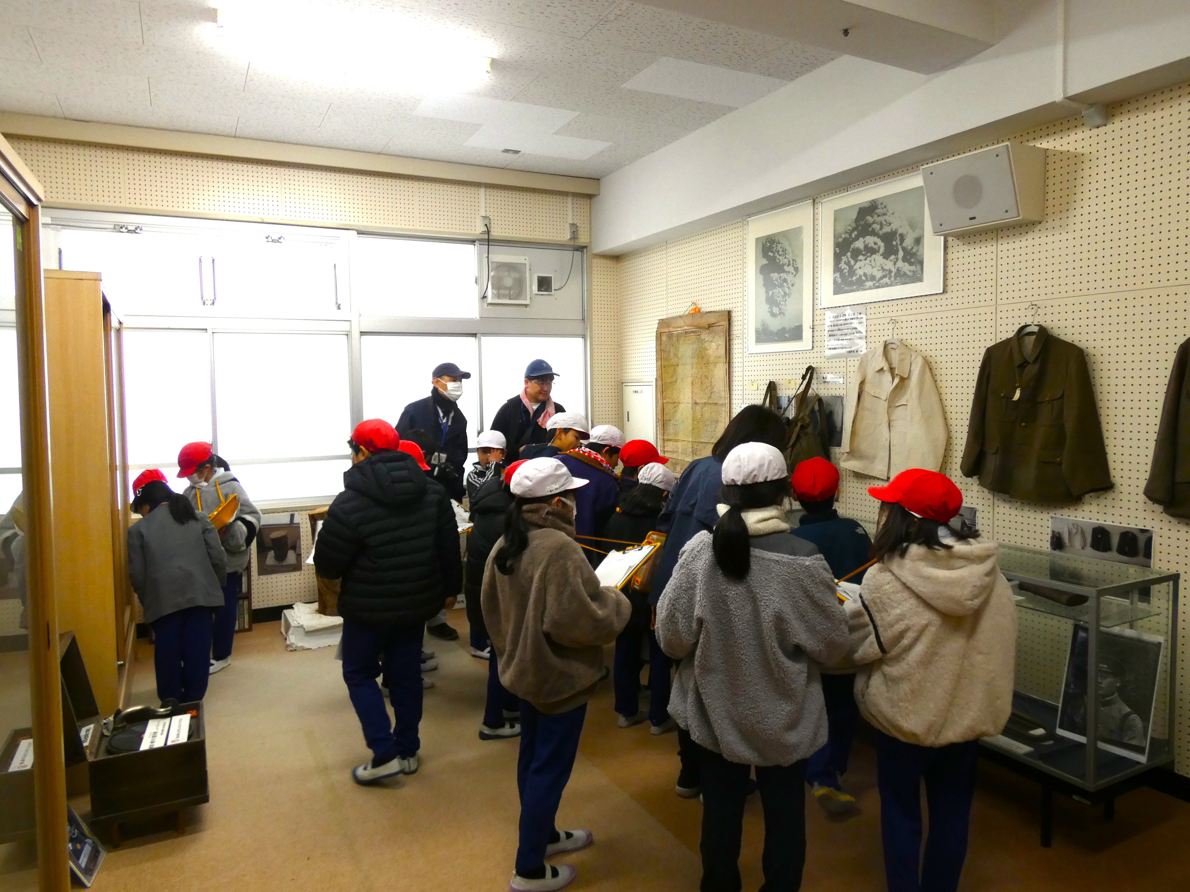 見学に来られ、民俗資料保存会の皆さんが学習のお手伝いをされました。