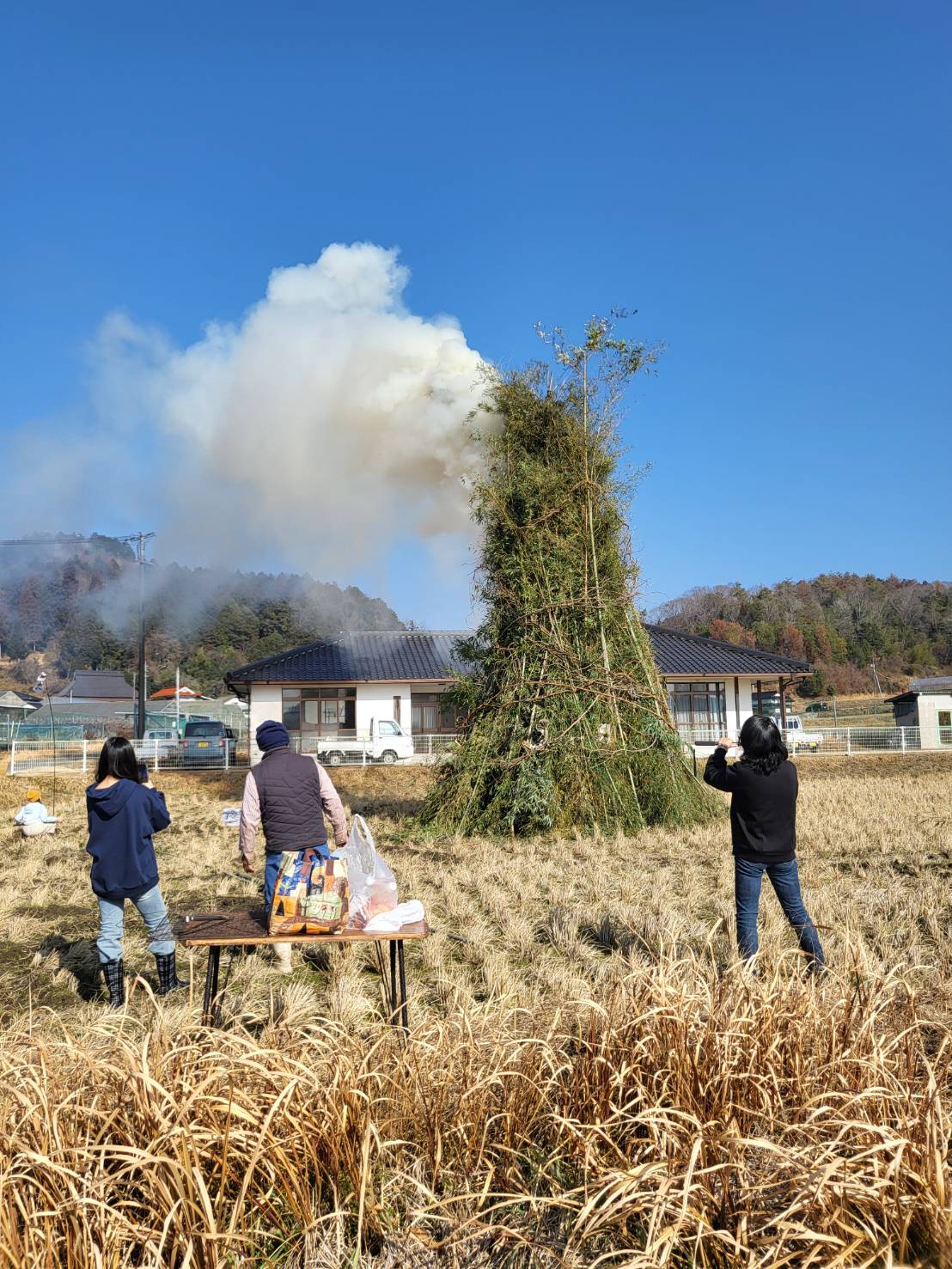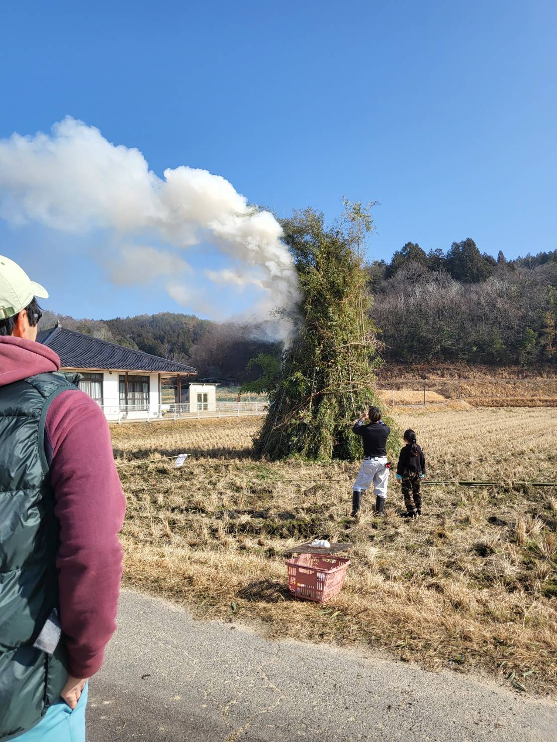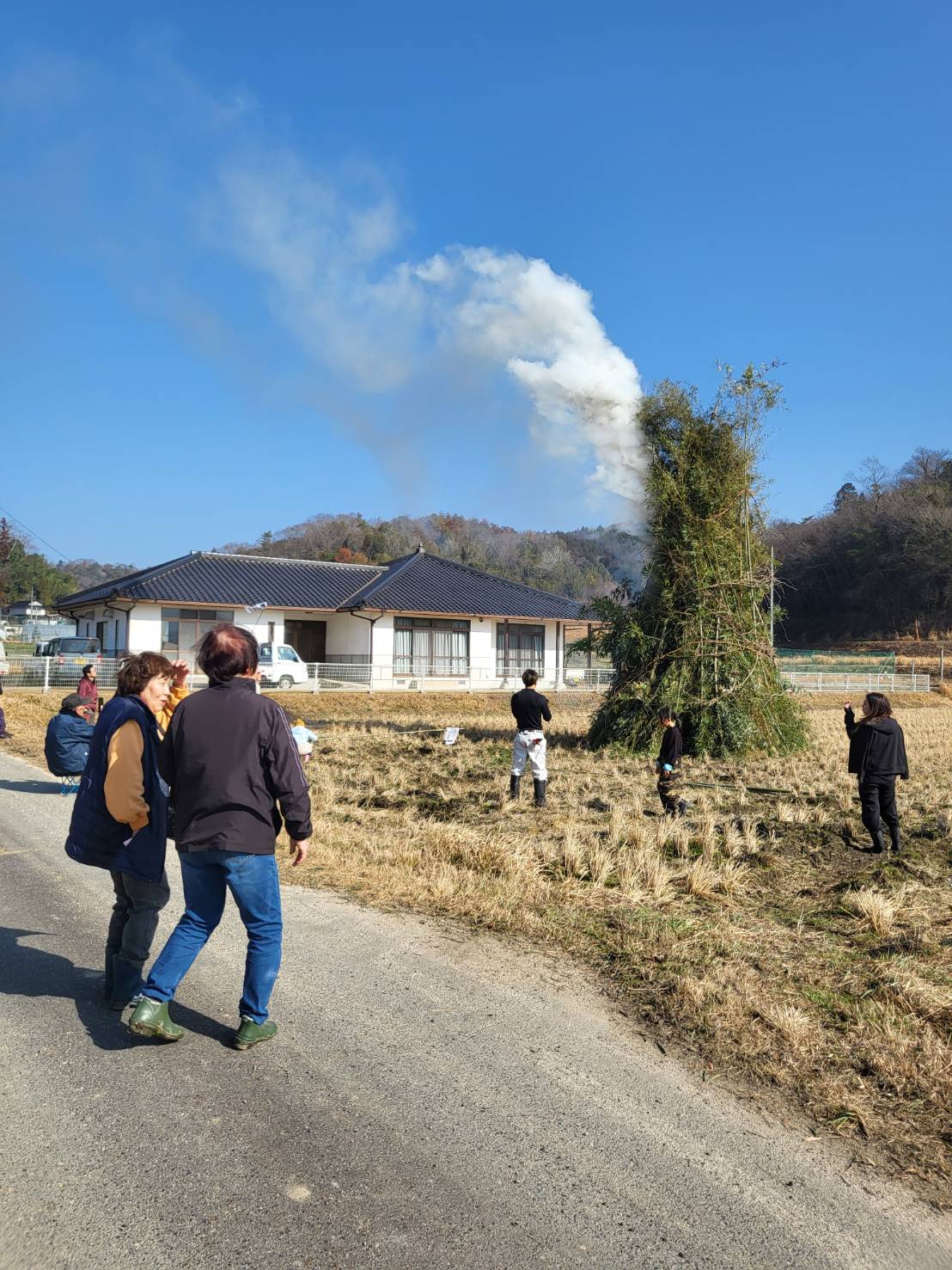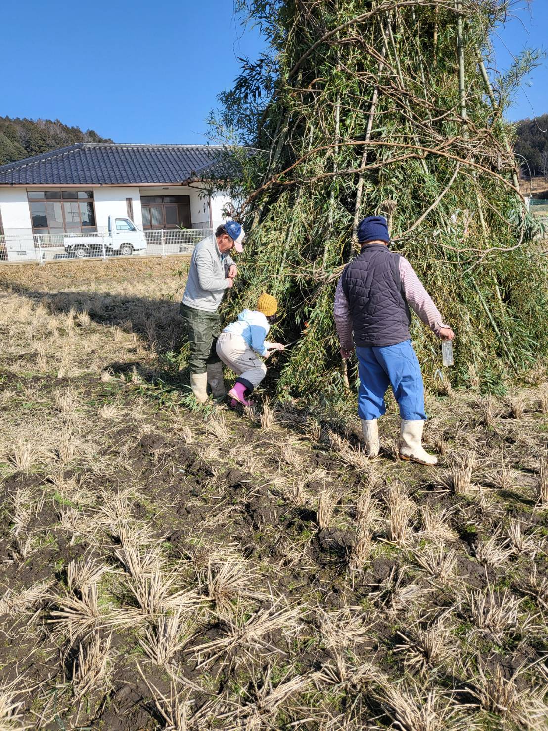 午前の部、午後の部に分かれて開催しました。前回のしめ縄作りに続き、西大田地区内外からの