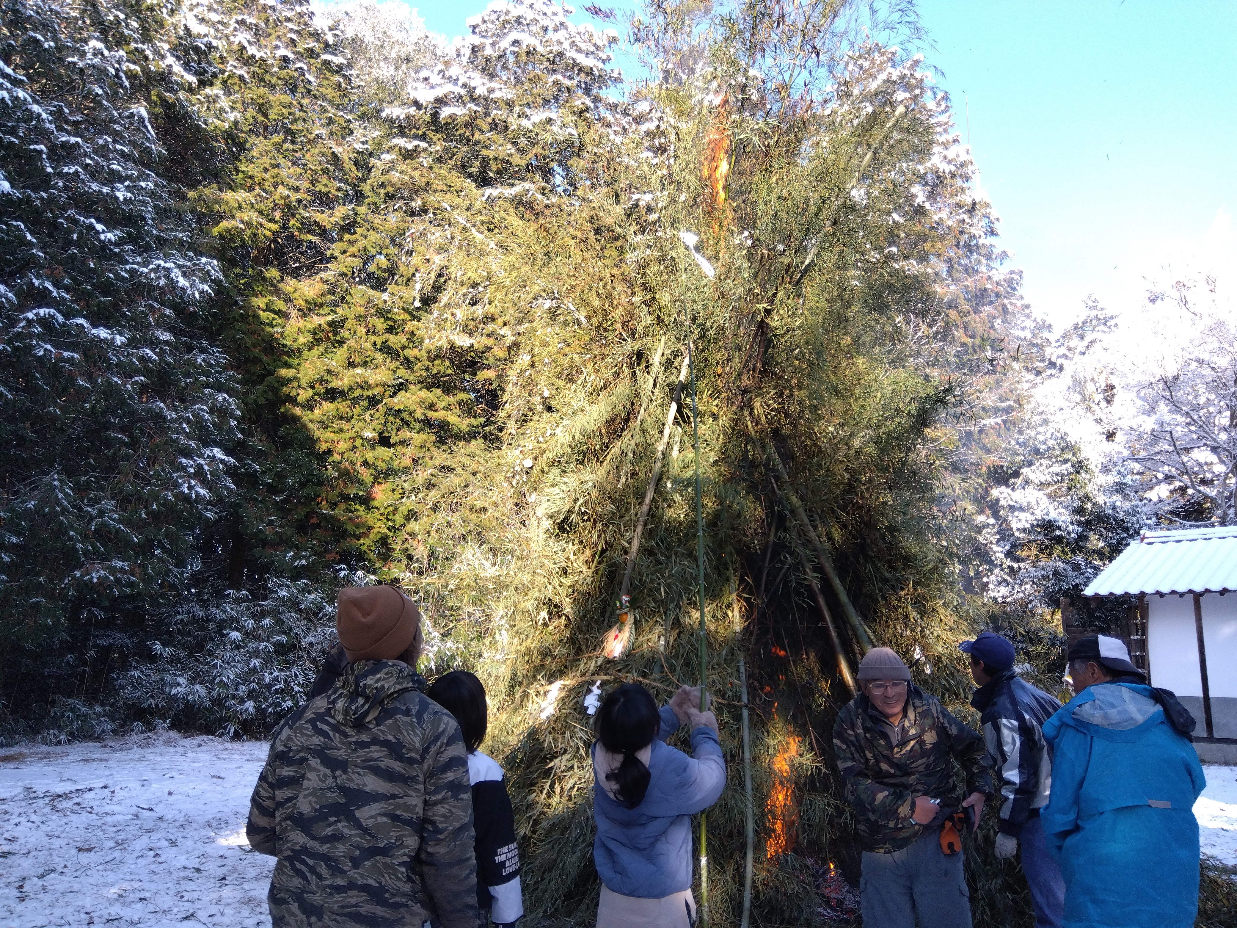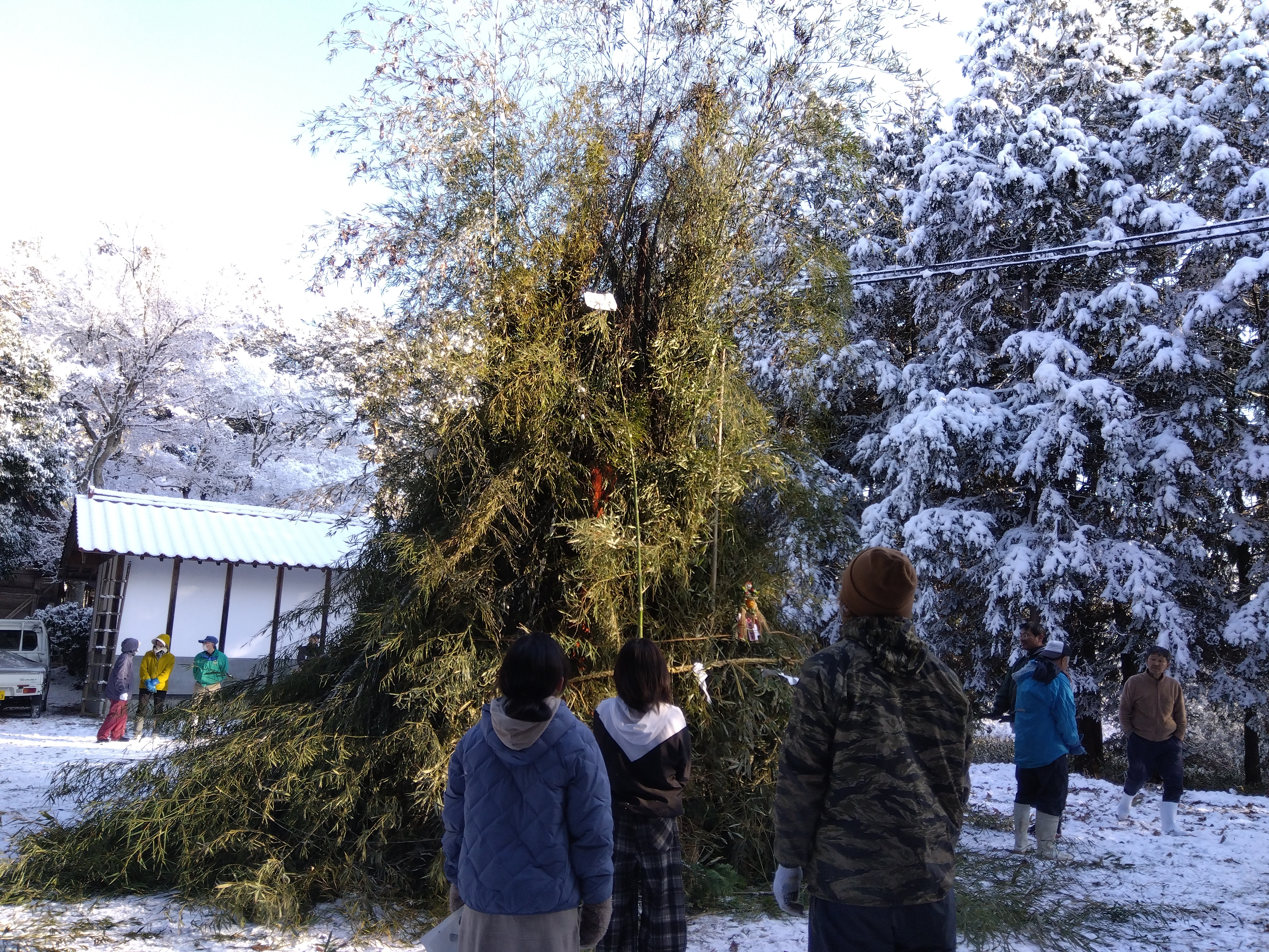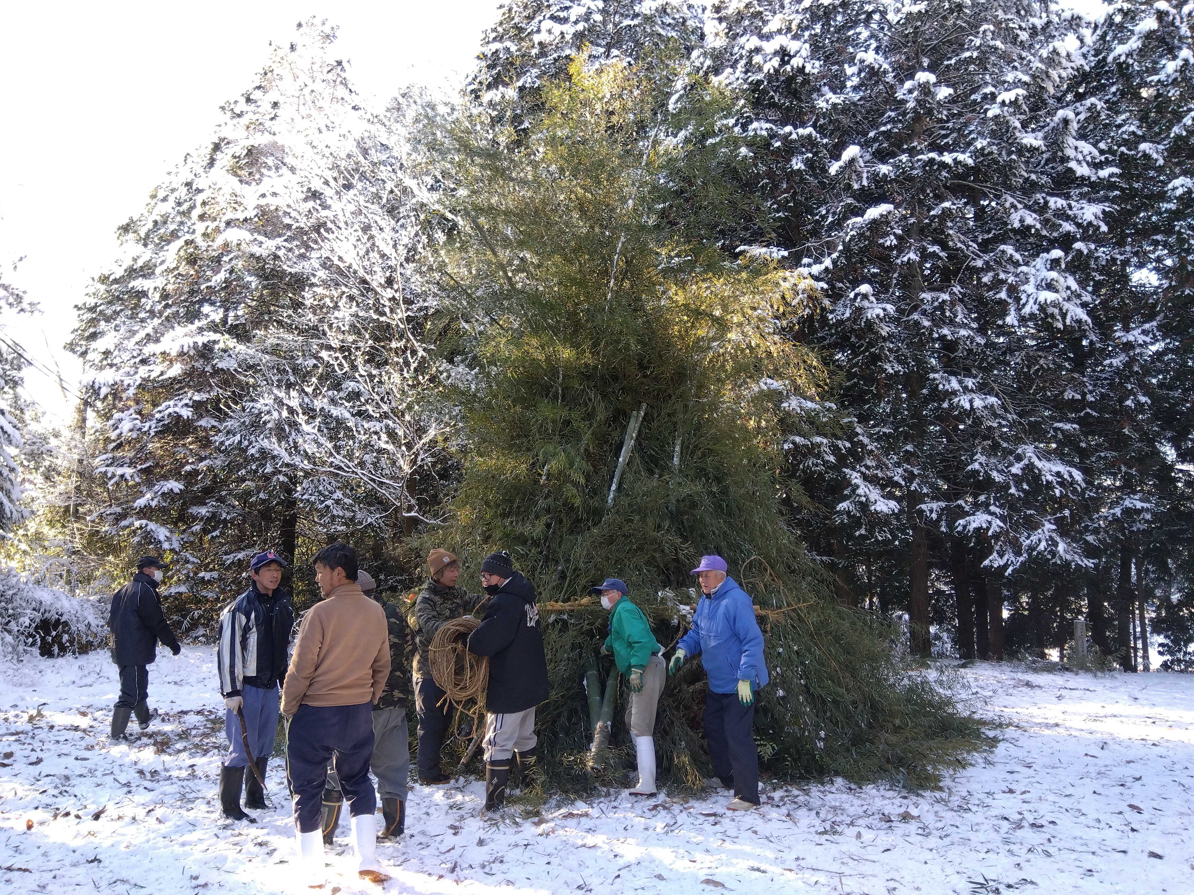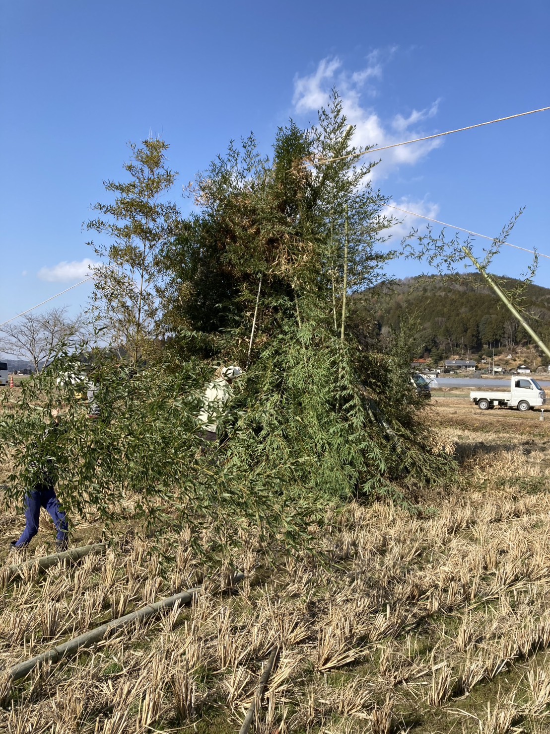初めての方は「どうしたら、ええ感じになるかねぇ」と相談しあったり、お互いに竹を押さえる所