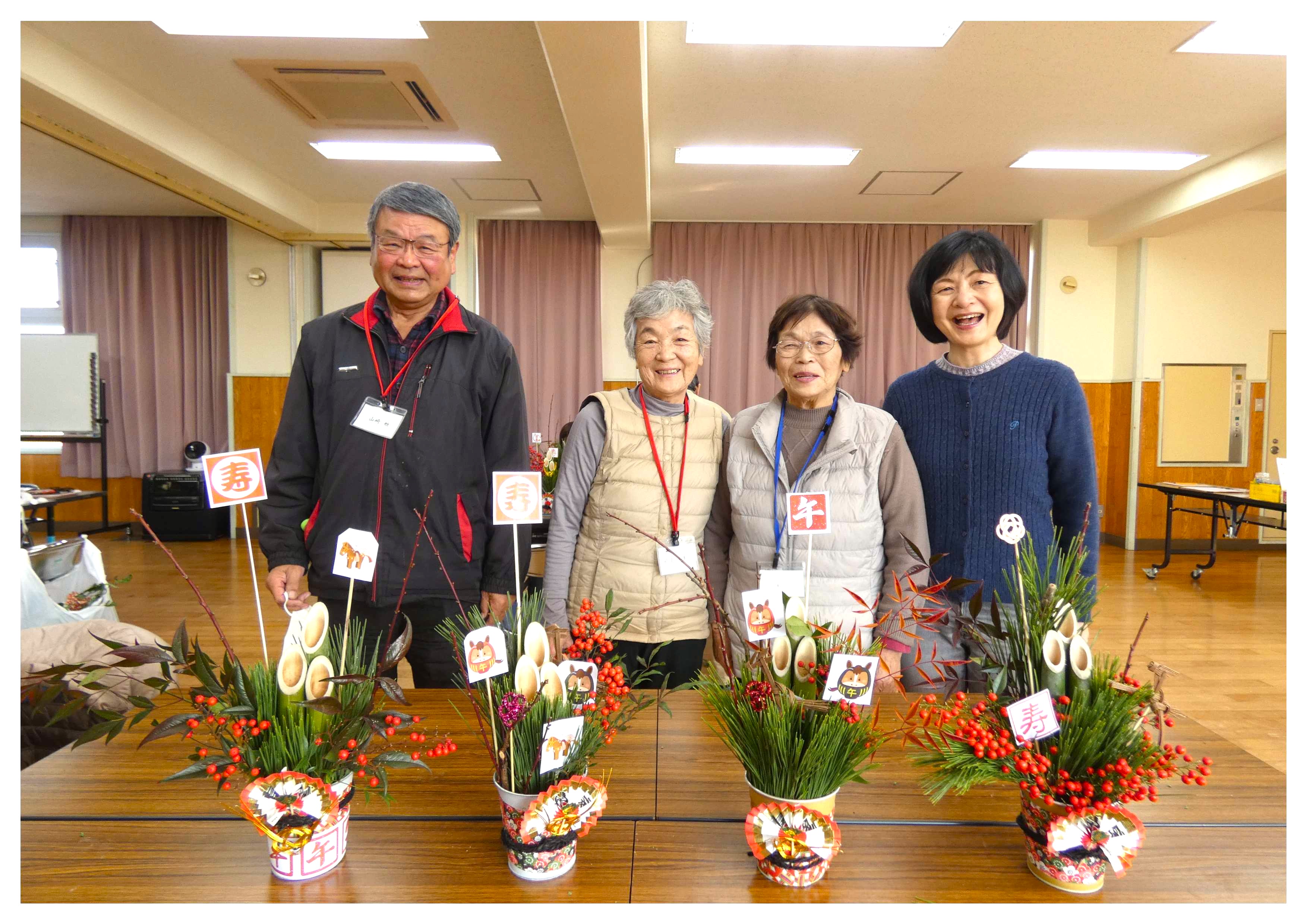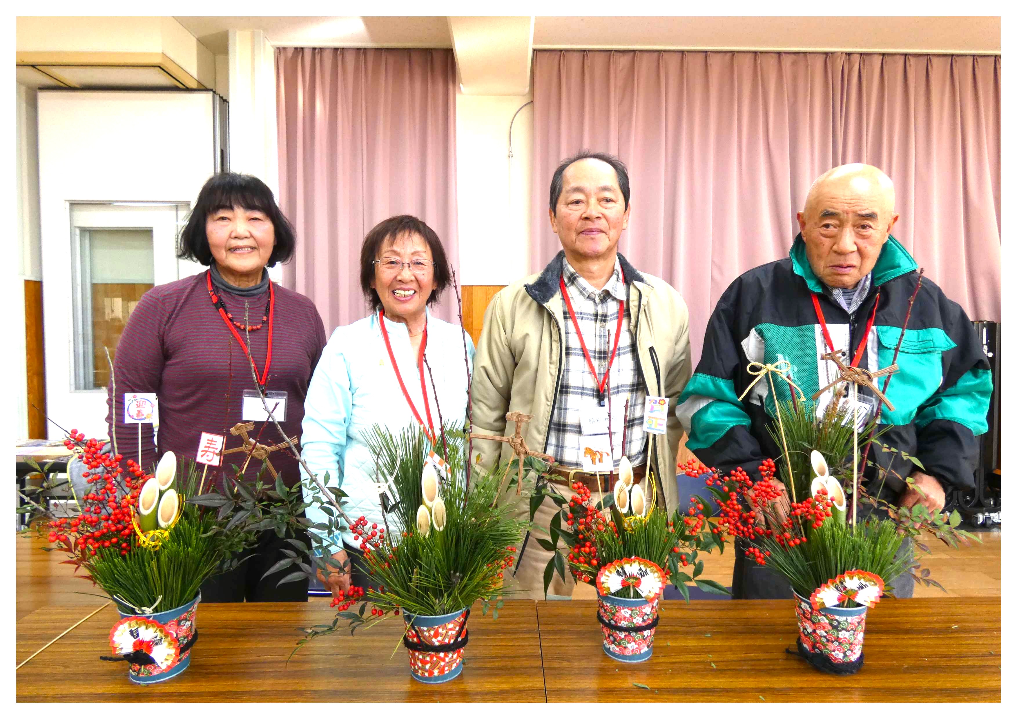 参加がありました。そして、今回も多くの方から梅、蝋梅、南天など、たくさんの材料を提供して