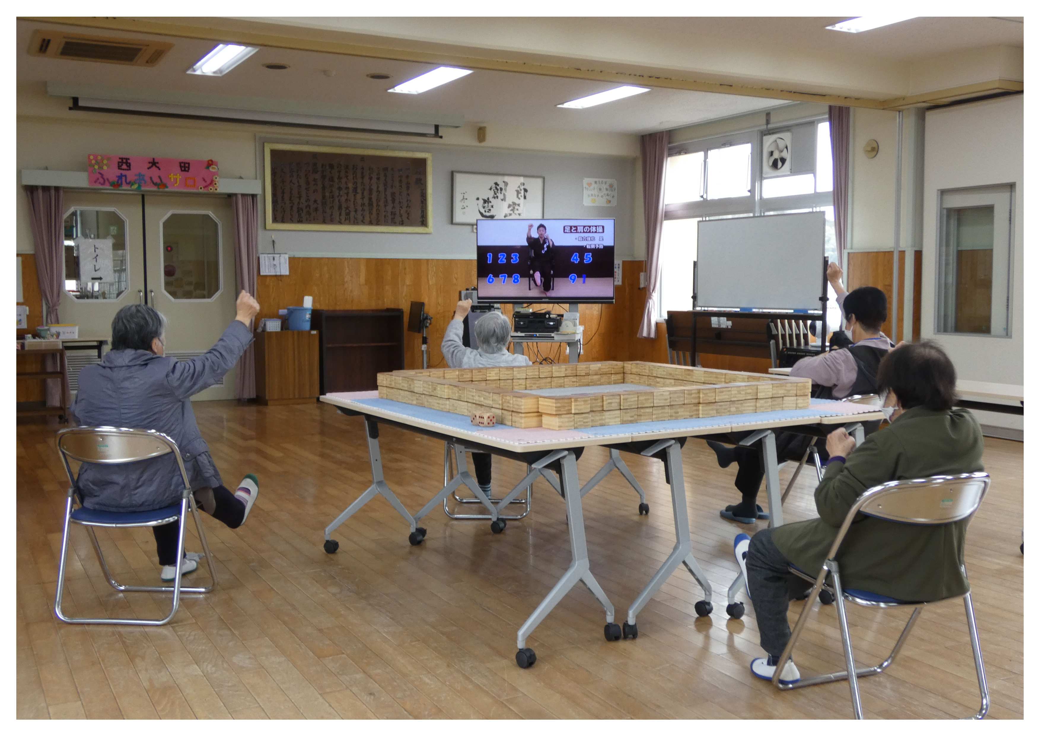 午後からは体操をした後、参加人数が少なかったため、当初の予定を変更してコミュニケーションマージャン