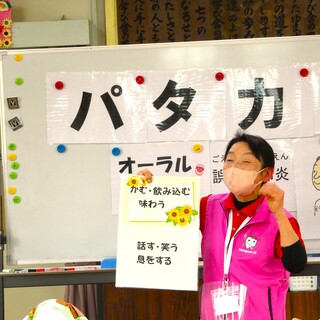 その後、歯科衛生士の原田さんが「お口の健康の話」をされ、途中「お口の体操や