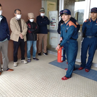 避難の際の注意点等については、資料館の玄関先で消防署員より講習を受けました。消火器の