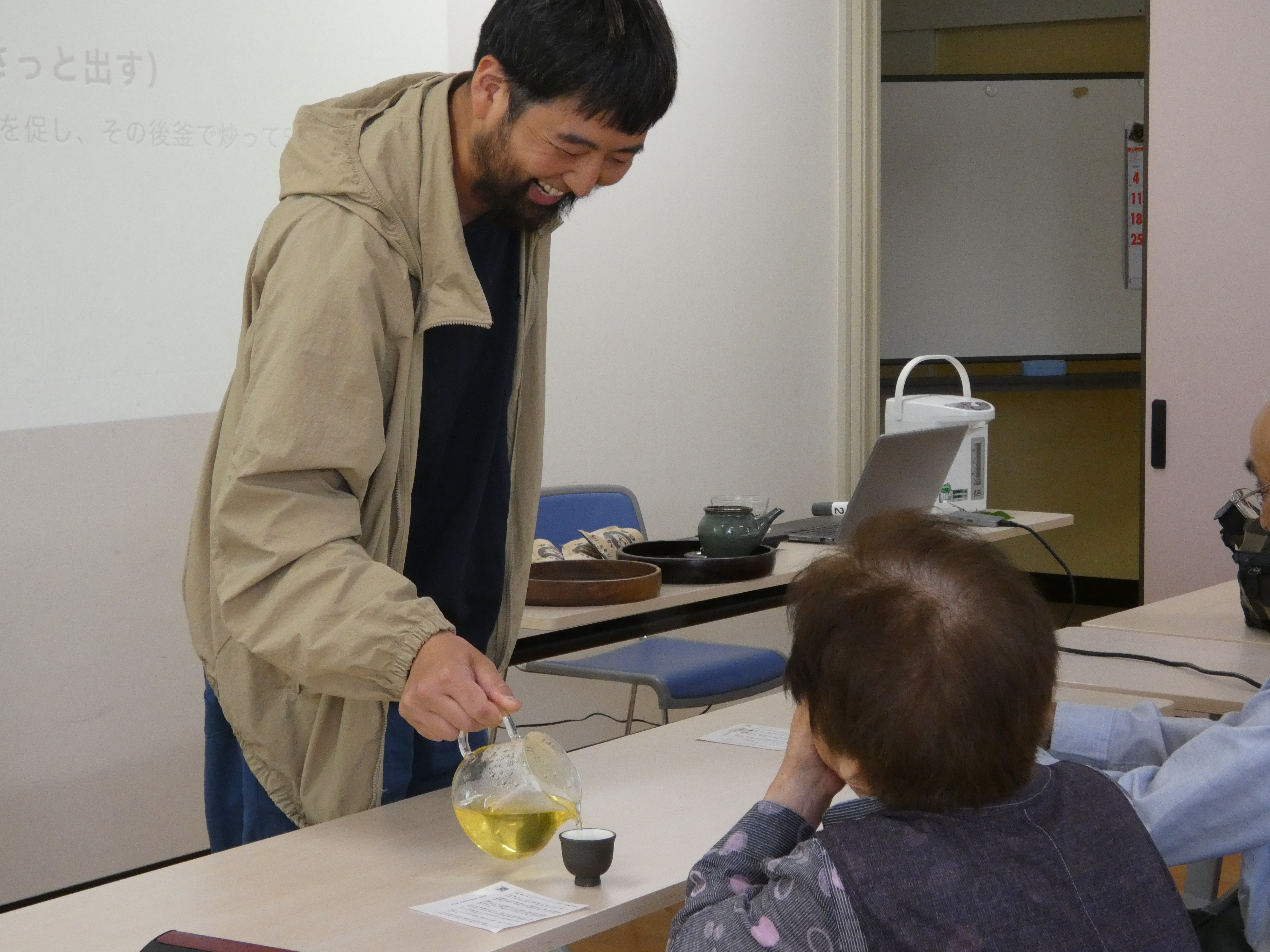 「家にお茶の木があるから、昔みたいに家で茶摘みをしてやってみようかしら」と、お茶の会を心