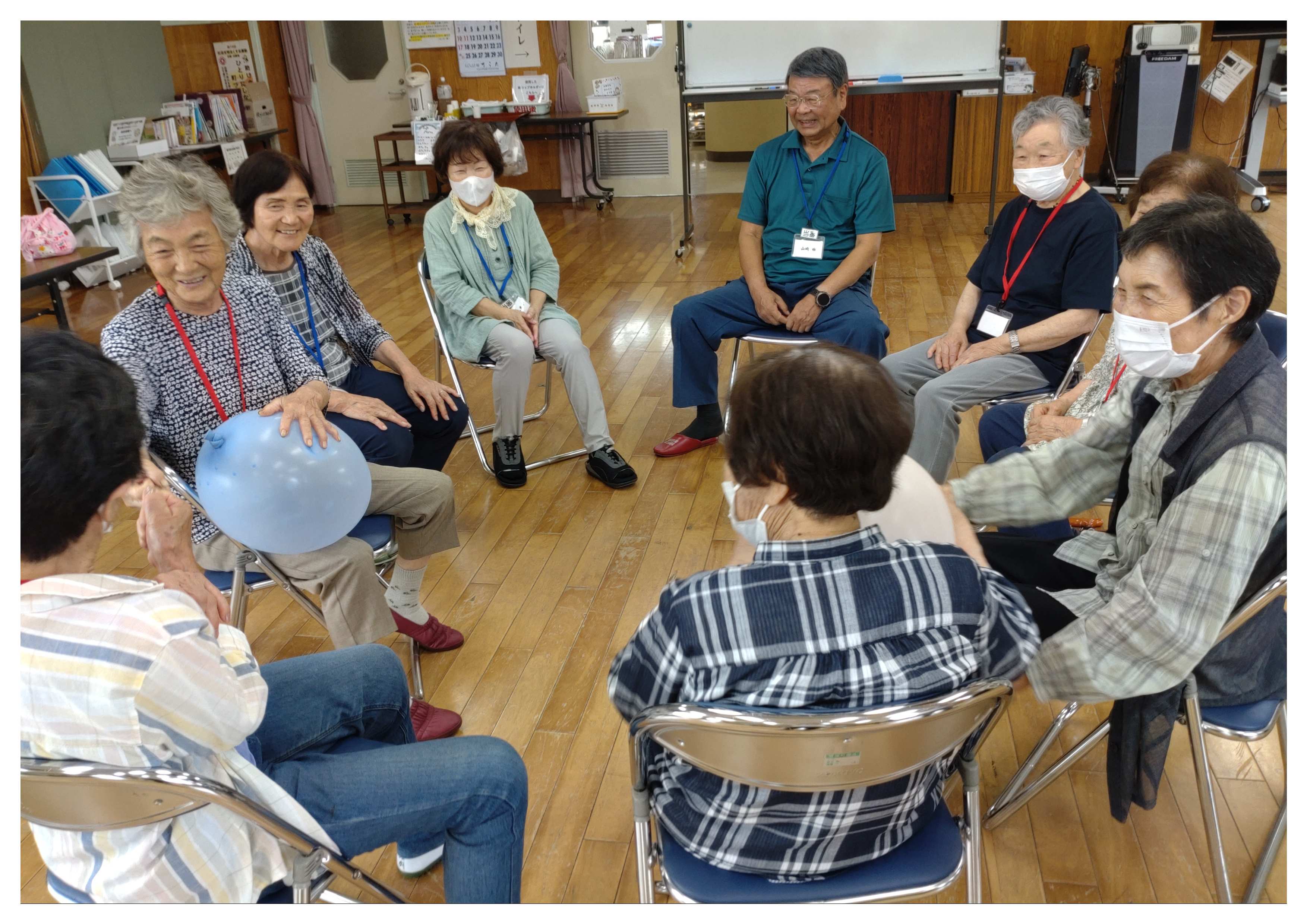 午後からは体操をした後、お手玉や風船を使ったレクリエーションや脳トレをして楽しみました。