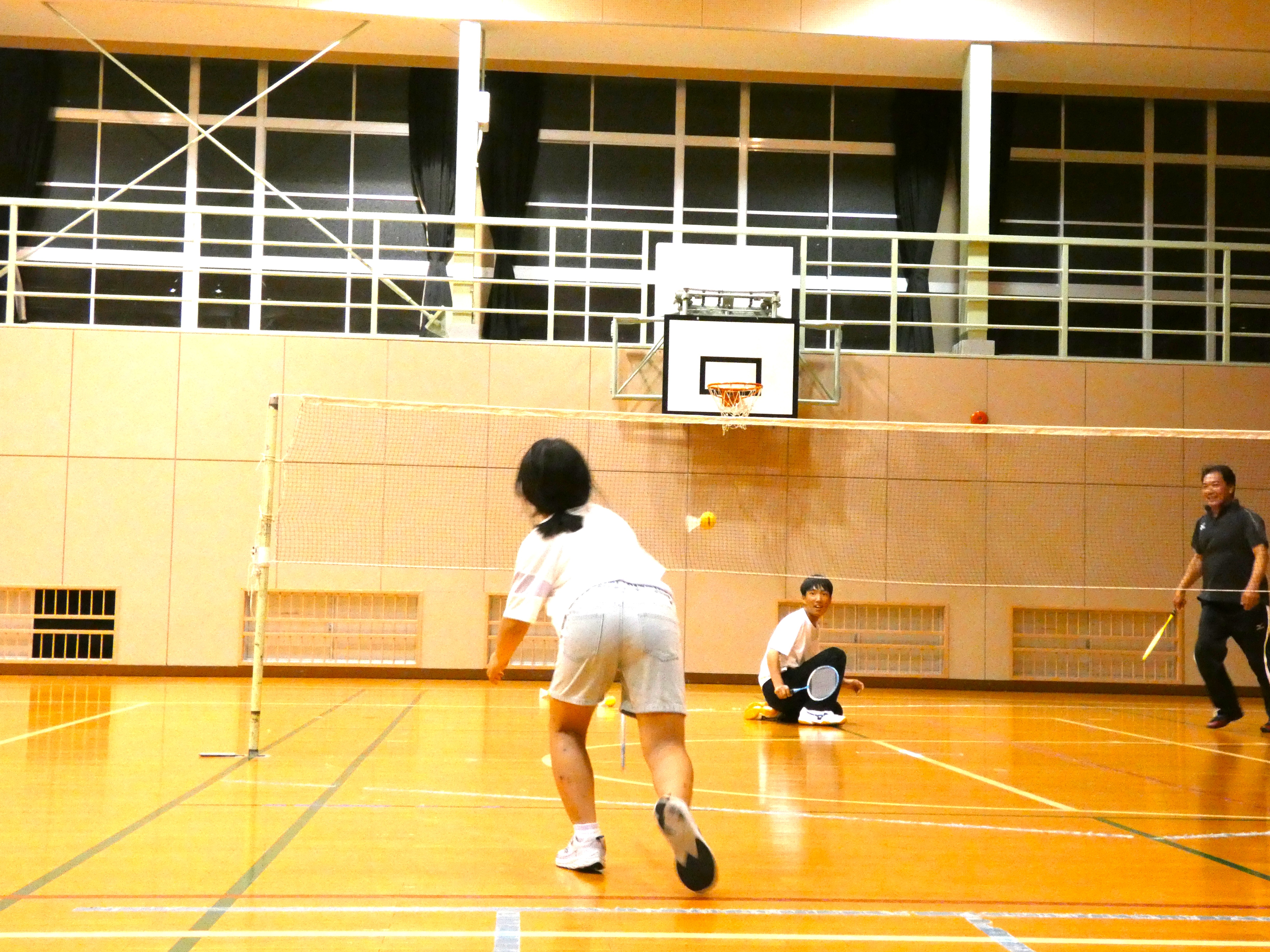 推進委員さんに教えていただきながら、「ファミリーバドミントン」を体験しました。