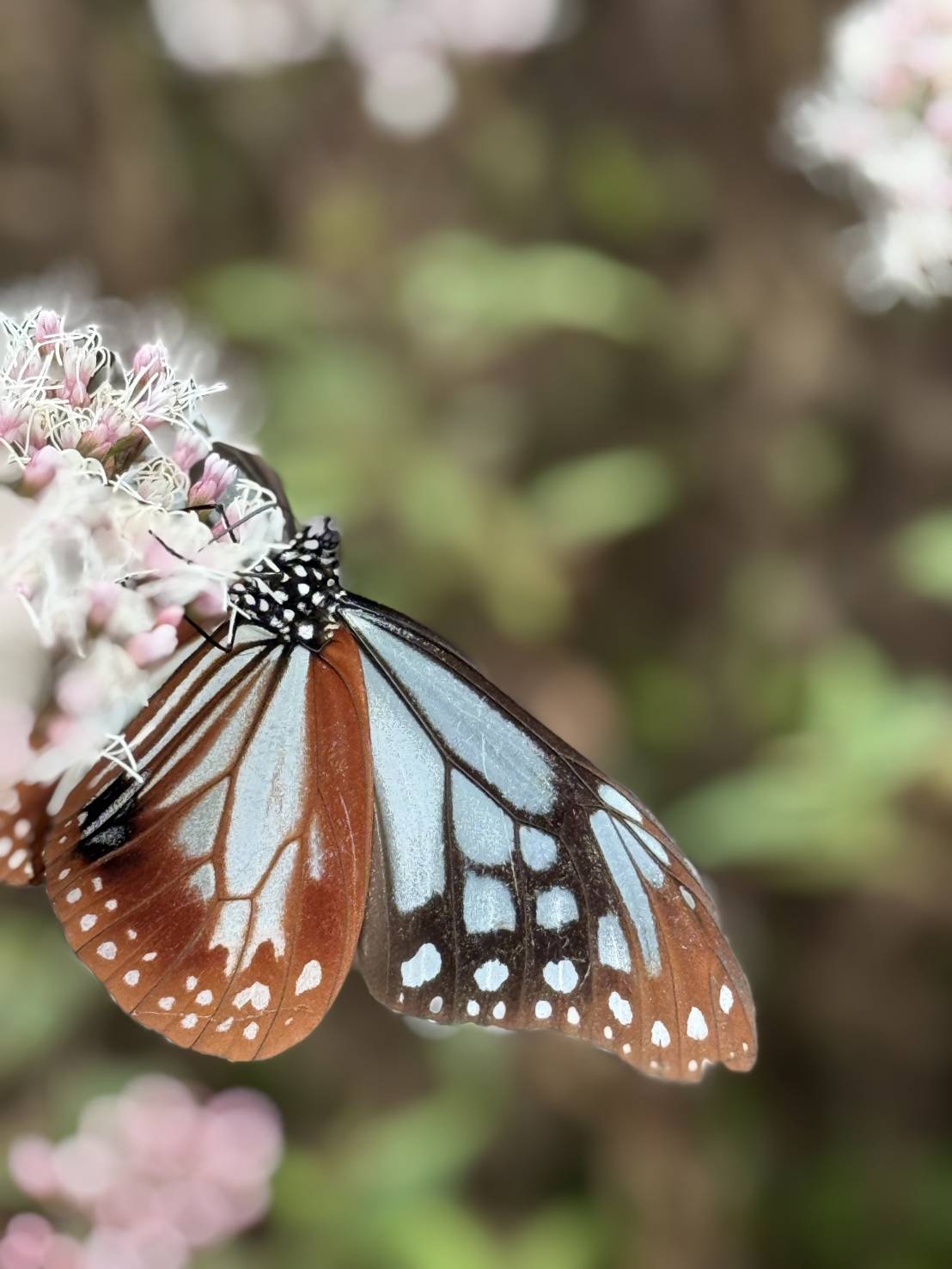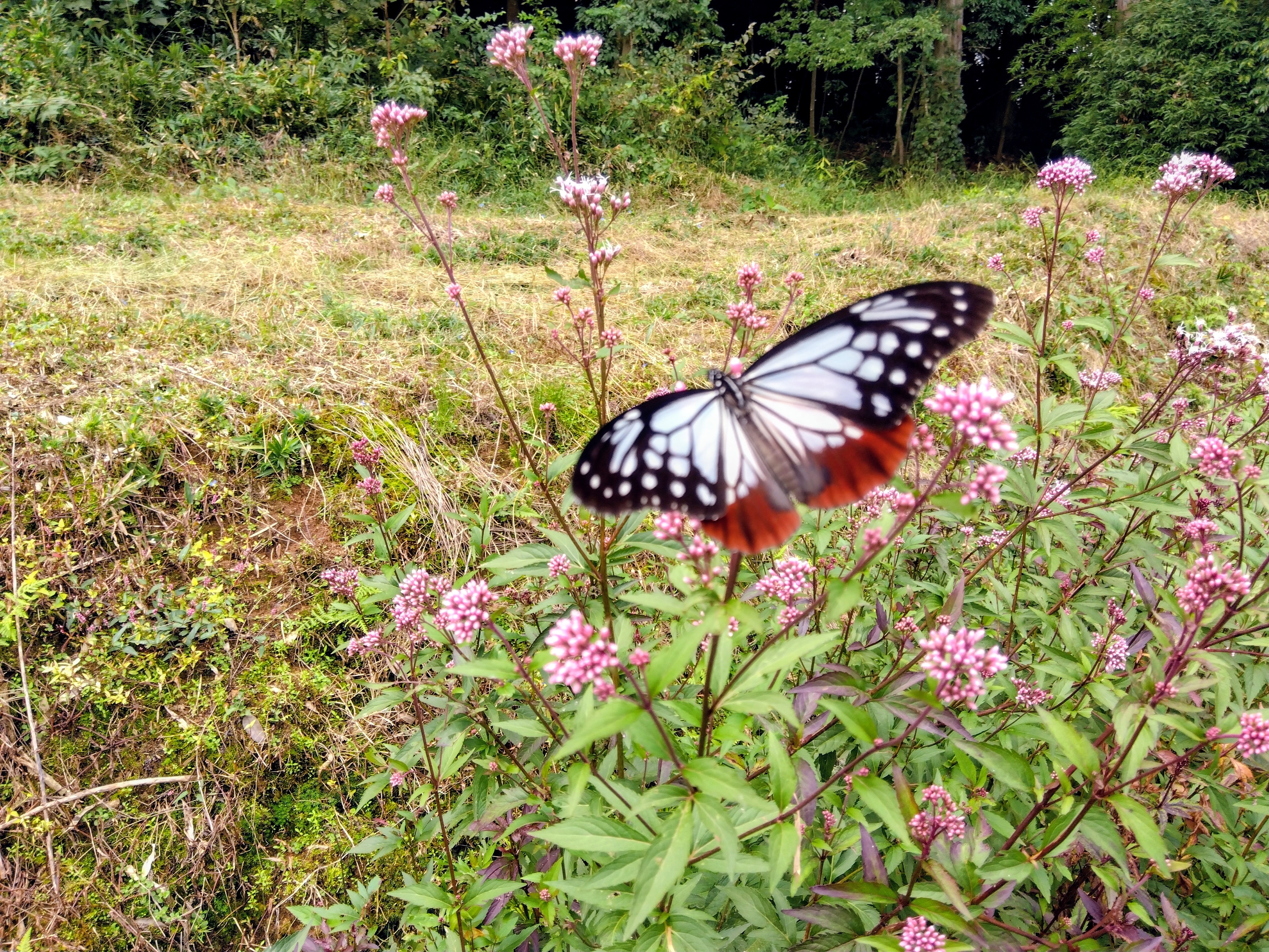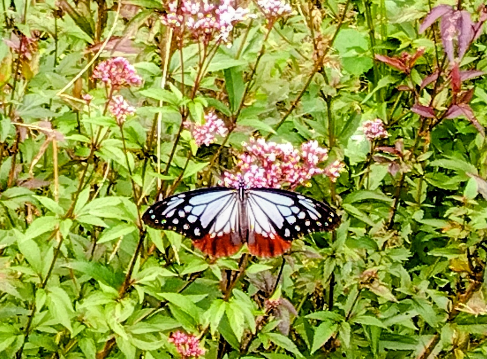 おられました。淡いピンクの花の上を優雅に舞う姿を眺めながら、「海を渡って飛んできた