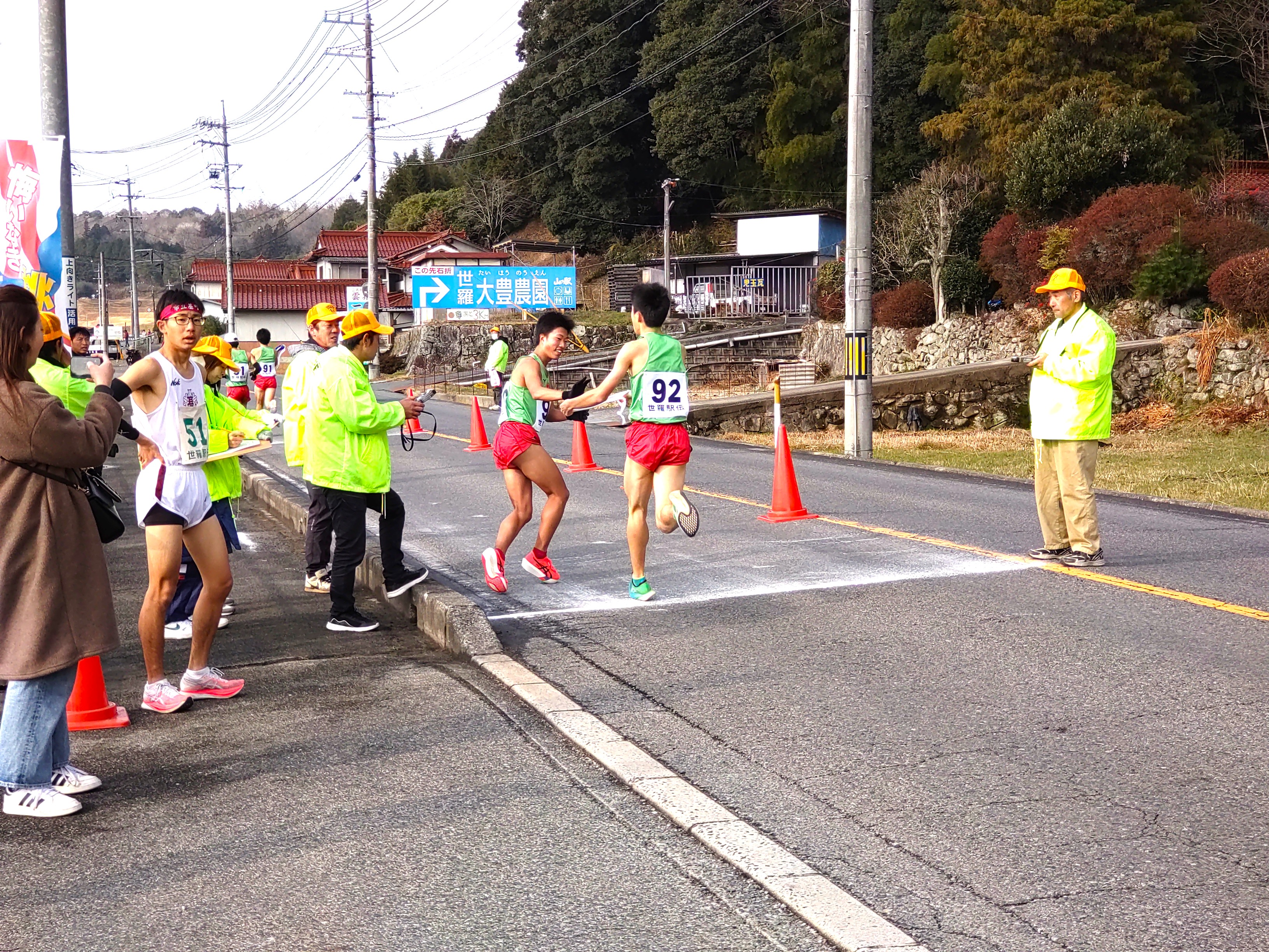 選手の皆さん、中継所の運営や交通整理員として協力されたスポーツ協会の役員さん、沿道で声援を