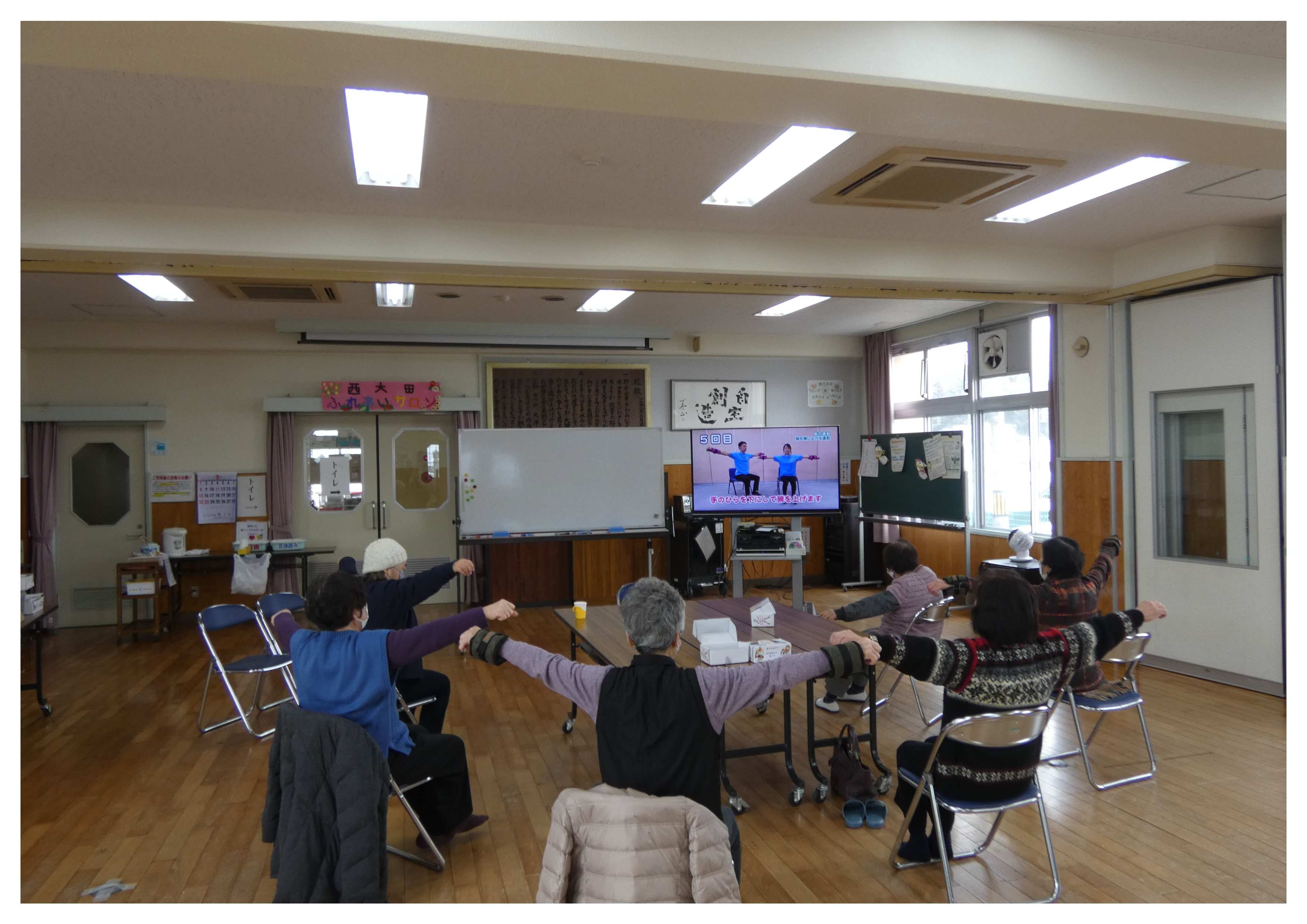 午後からは、いきいき百歳体操をした後、講師に企画課の佃さんと福祉課の西内さん、大山さん