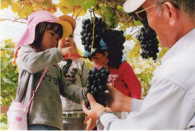 ・ぶどう狩りを楽しむ児童たち にしおおた保育所